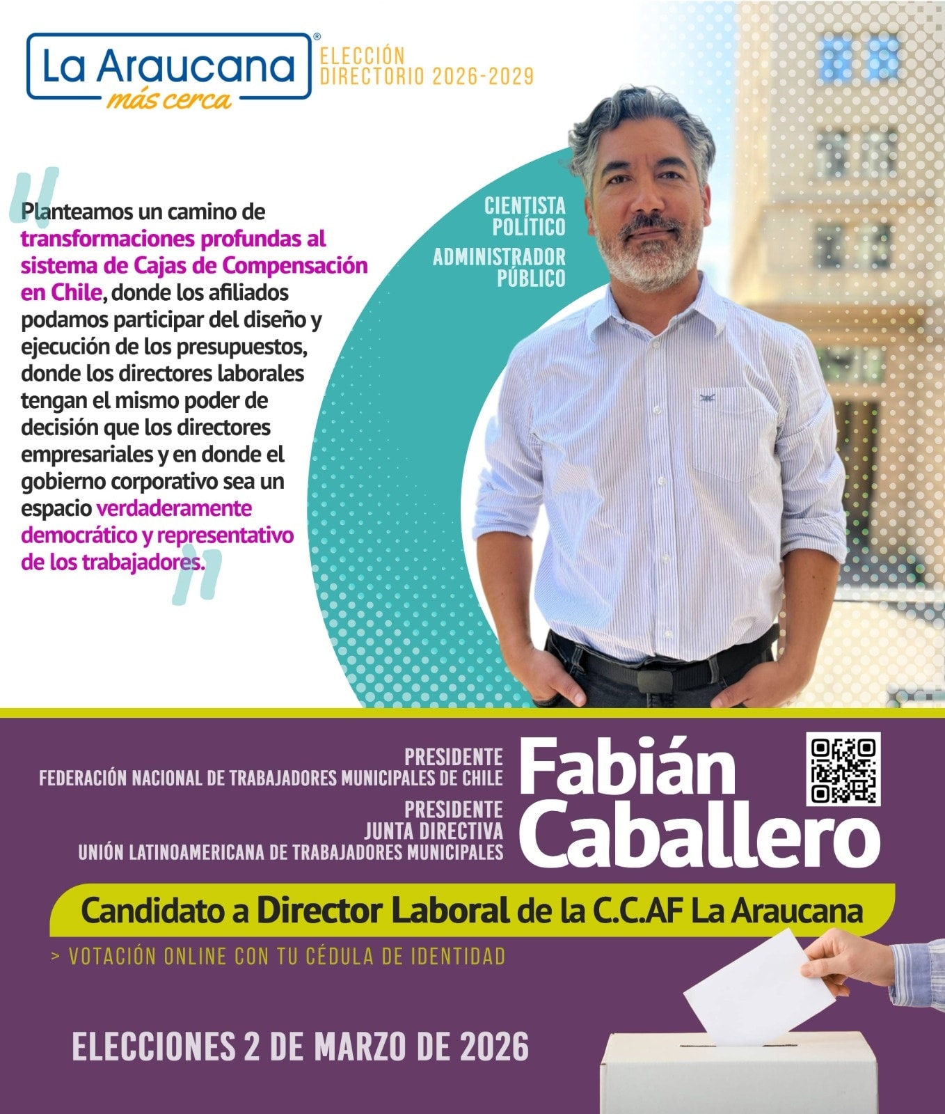 Fabián Caballero, presidente de FENTRAMUCH, candidato a Director Laboral de La CCAF La Araucana.