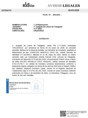 ROL – V-77 -2025 – 1° Juzgado de Letras de Talagante – Caratulada “CRUZ/CRUZ”